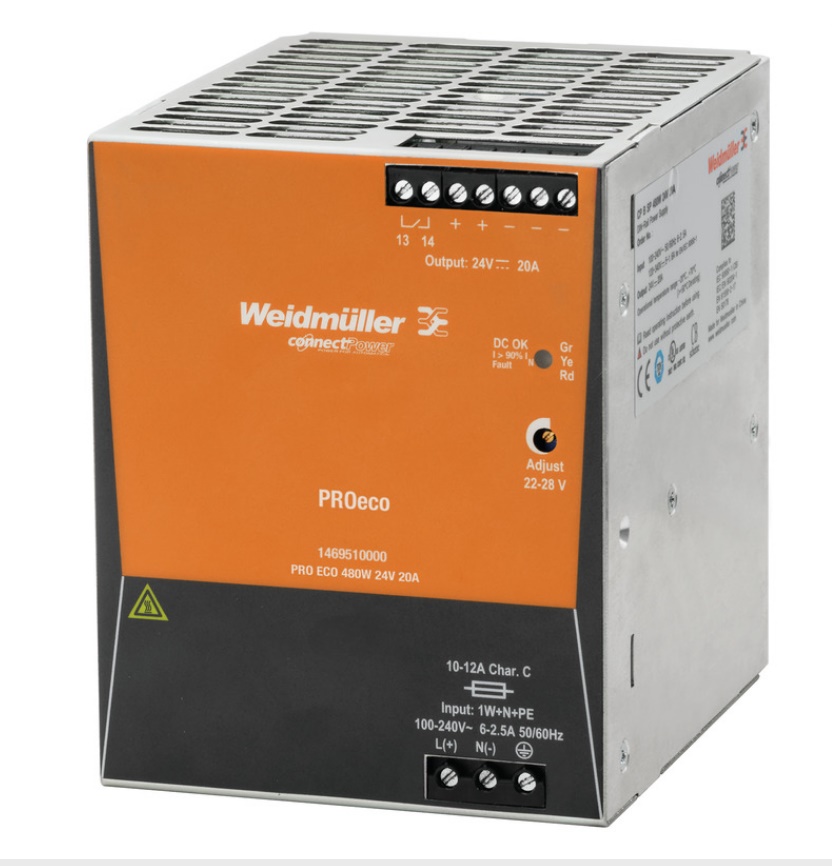 Stock, PRO ECO 480W 24V 20A, Weidmuller, 1469510000